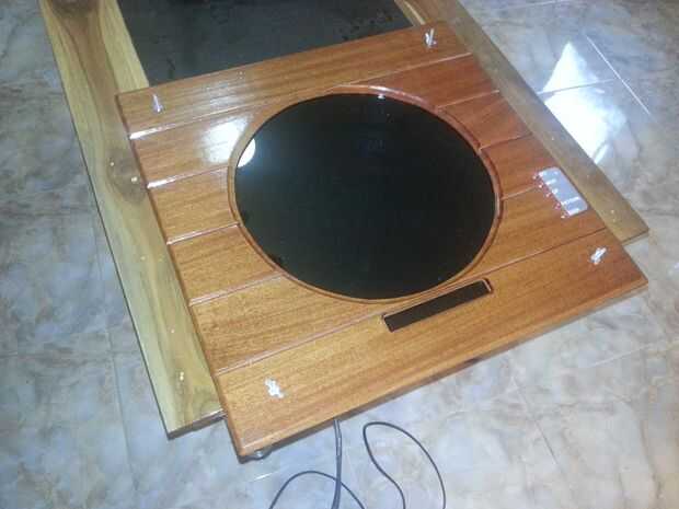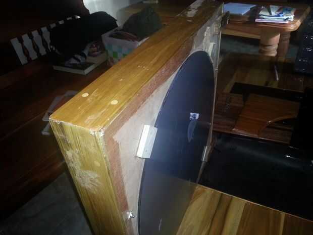 Montado sobre el agujero es un cilindro de madera contrachapada de 3mm del mismo diámetro en el interior del agujero y unos 4mm más corto que la parte superior del marco. Esto es que el espejo de 1 manera para colocarse por debajo de la cara frontal.