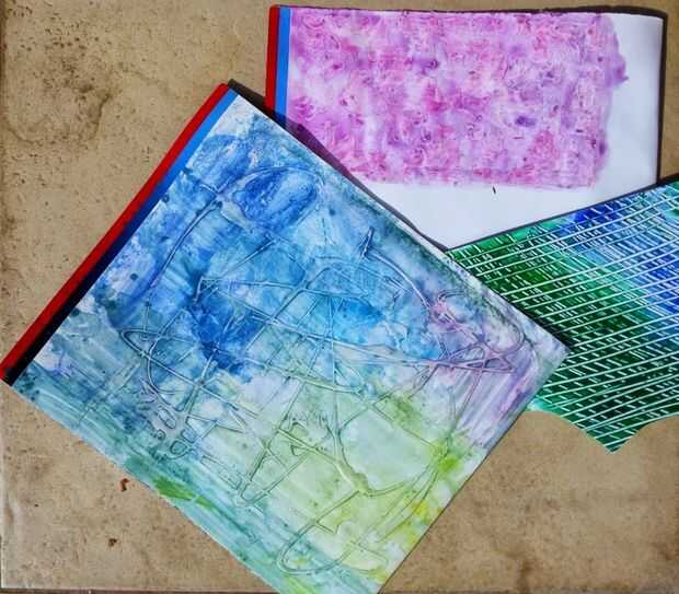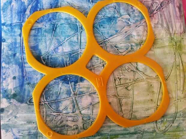 A continuación hice diseños abstractos con una pistola de pegamento caliente sobre un papel de color blanco agua. Una vez hecho esto desviado tinta todo crear varias texturas en el papel. Usé esto para construir el fondo del marco.