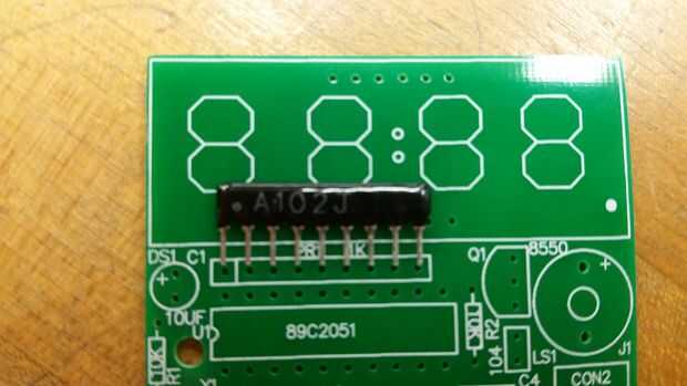 • Pantalla de LED - va en grande rectángulo etiquetado DS1 (toma la mitad de la placa)