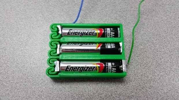 Usé el portapilas doblar por enif en Thingiverse como mi soporte AAA. Usar un duplicador fabricante-bot imprimí el titular en unas 3 horas con 100% relleno PLA en ajustes de detalle alto. Me gustaría sugerir un alto relleno porque imprimí un soporte 10% y agrietado cuando puse mi primera batería.