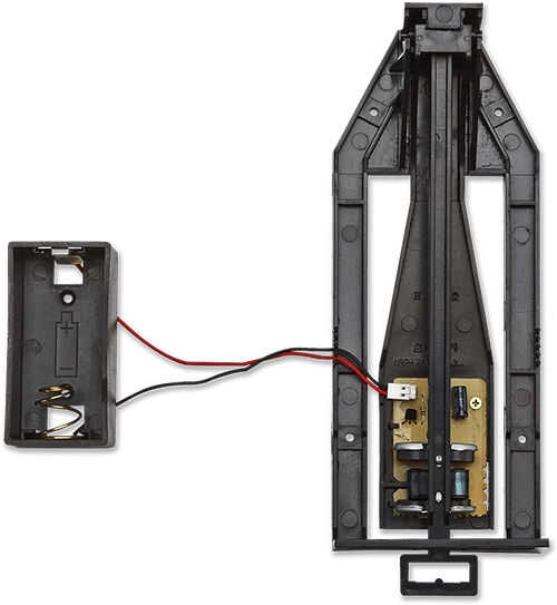 1. al abrir el dispositivo, tenga en cuenta que hay una batería con cables y un conector (Figura B) que tiene que estar conectado a la unidad de péndulo (Figura C). En la mayoría de los casos es mejor montar la batería muy por encima del disco del péndulo.
