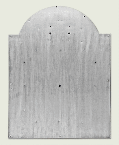 Con la envolvente de madera marcado como plantilla y dejando un traslape de 20mm, la placa de dial se corta de una hoja de aluminio.