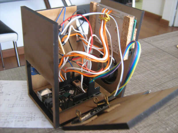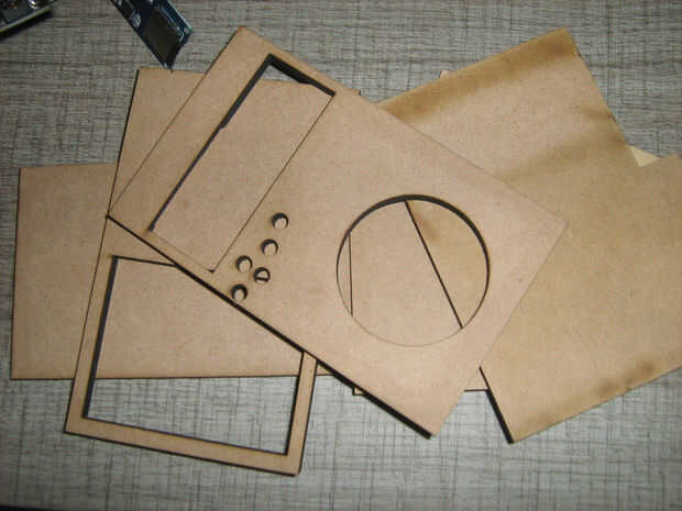 El diseño de la caja final fue realizado utilizando la aplicación web de fábrica de caso. Realmente facilita las cosas, ya que usted puede establecer sus dimensiones de la caja, así como definir los agujeros redondos y rectangulares. El diseño final fue cortado en MDF de 5mm de espesor.