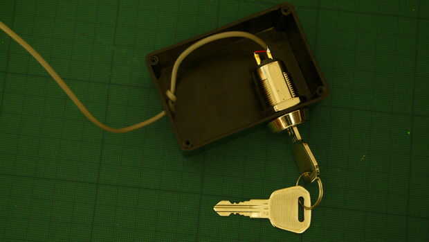 Algunas perforaciones apropiado en un cuadro de proyecto u otro recipiente para alojar el interruptor de contacto. Si su reloj de alarma tiene suficiente espacio muerto, es montar el interruptor en el cuerpo. Mía no, así que tuve que montar como un periférico.