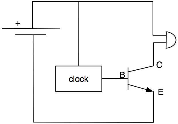 En condiciones normales la corriente consumida por el reloj es insuficiente para permitir que cualquier corriente de flujo C a E y el zumbador es silencioso.
