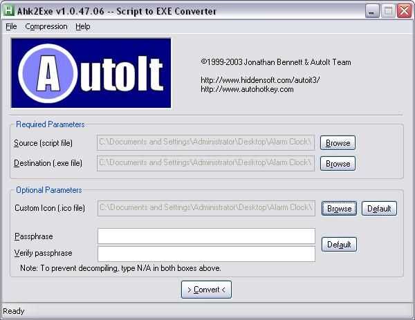 Lo que quieres hacer es convertir el archivo ahk que hemos editados sólo en un exe. Ir a la carpeta que se auto instalado teclas en (por defecto: C:\Program Files\AutoHotKey) y busque la carpeta llamada compiler. Abra y ejecute el programa ahk2exe.exe. Debe traer una ventana que parece en la imagen incluida en este paso. Seleccione examinar junto al cuadro fuente y busque el archivo de ahk que lo editados. El campo de destino es opcional, pero generalmente es una buena idea para llenar. Si tenes un icono cool para el programa seleccione examinar junto al cuadro de icono personalizado y van a encontrar. Una vez que usted haya entrada todo haga clic en convertir. Una vez creado el exe tienes que moverlo a una ubicación que sea fácil de encontrar, sugeriría a mis documentos.