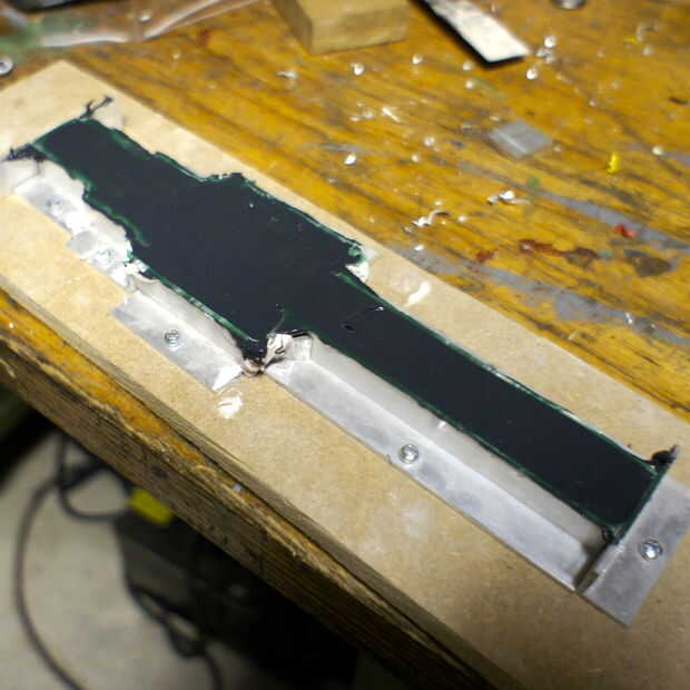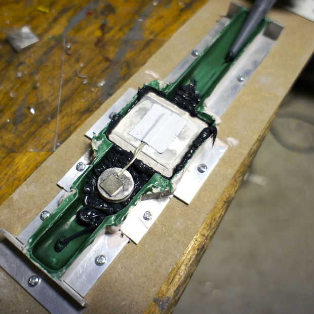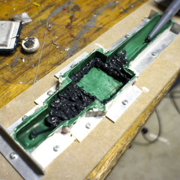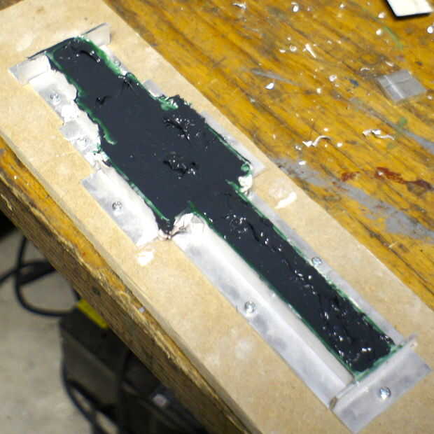 Usé un negro (gris oscuro) kit de silicona que se utiliza normalmente para sellar mesadas de piedra. Ahora comienza la diversión!