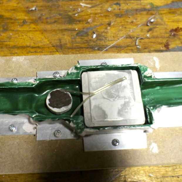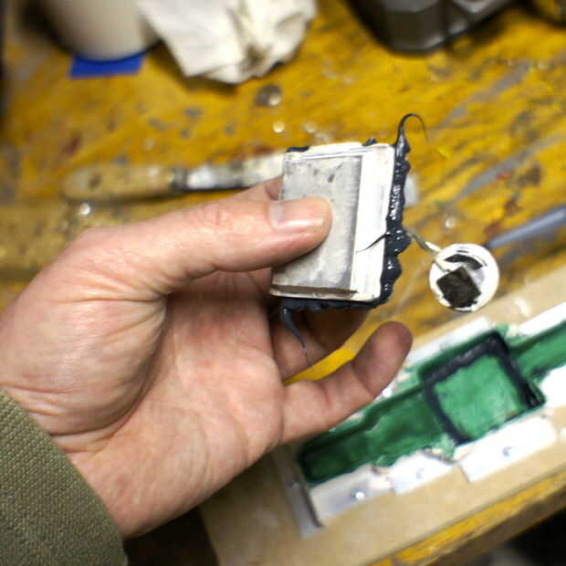 • Poner el reloj simulado, cable y batería dummy en el molde.