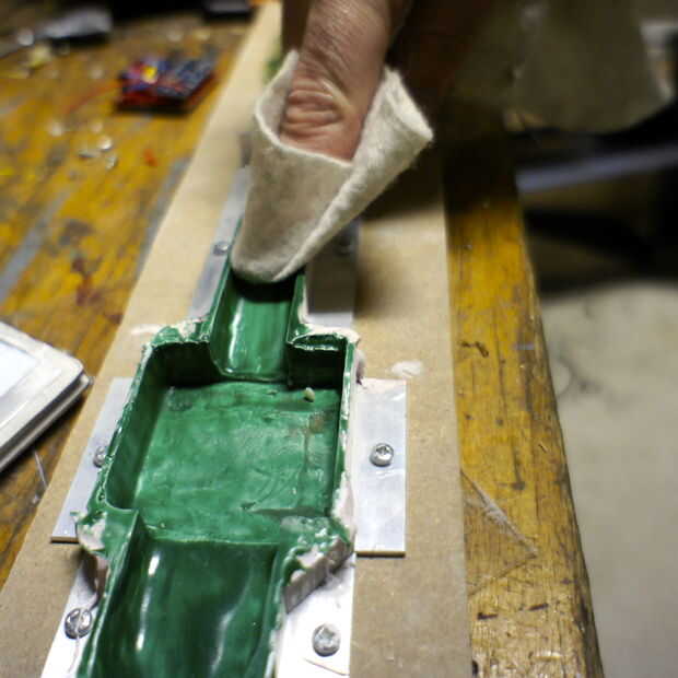 Antes de que podemos exprimir la silicona en el molde, primero tenemos que preparar el molde con cera, por lo que también podemos extraer el formulario fuera del molde cuando esté terminado.
