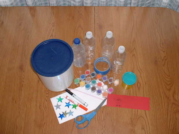toma dos botellas, que piensas que son lo suficientemente bueno para un reloj de arena y fácilmente disponibles a tu alrededor.Paso 1: A y Color Después de pegar la cinta encima de ellos unirse a dos de ellos con una pistola de goma y el plástico de