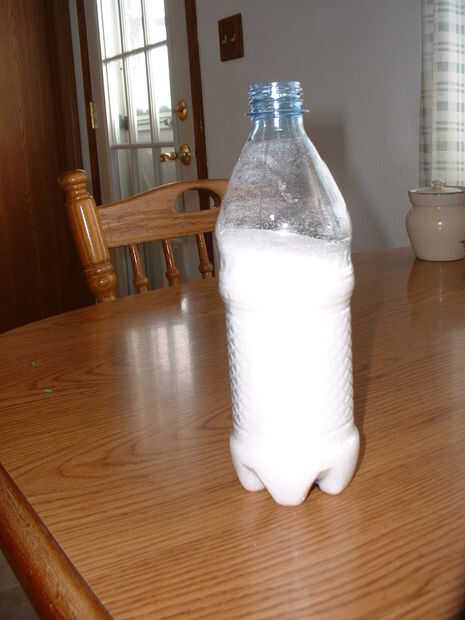 Tome una de sus botellas y llenar un poco más de tres cuartas partes del camino con azúcar, sal, arena,