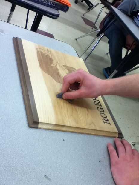 Polly su madera para añadir una capa transparente. También arena con bola/cepillo de alambre para que la capa se convierte en suave.