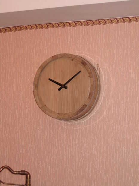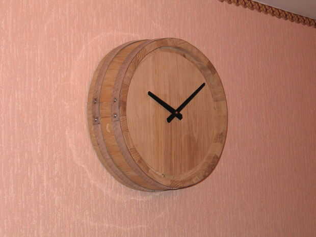 borracho porcina presenta Reloj de cuarzo de pared de barril de whisky de madera natural. Estuche - pieza de barrica única. Movimiento - Quartex premium.