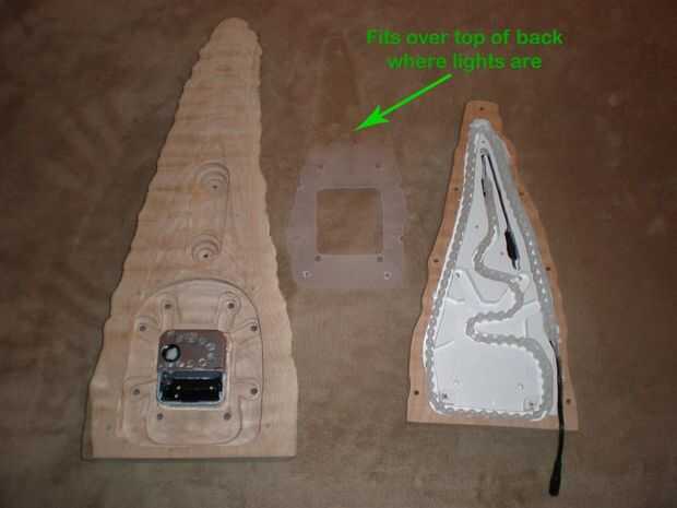 Como era routering todo, pruebo se ajusta absolutamente a menudo comprobar la holgura de movimiento, cadena de luz y cristales, ajuste según sea necesario. También decidí router hacia fuera un poco más en el titular de la luz en cuanto a poner una pieza de plexiglás sobre la cadena de luz y difusa de la luz para hacer los cristales de luz más uniformemente. Sin él, algunos cristales se iluminaron más brillante que otros dependiendo de donde el LED alineados.