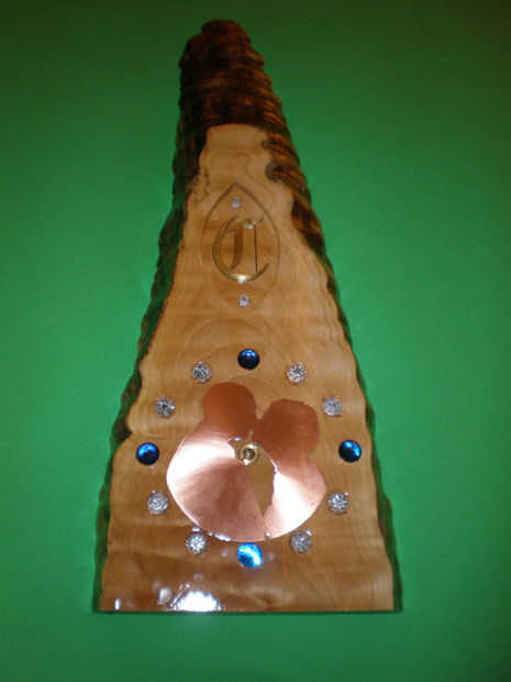 Aquí es donde se puso interesante... Me enteré que debo han colocado el silouhette frente de cobre antes de que poner en los cristales. La razón es que el frente no estaba completamente nivel o el cobre deformado un poco. Este hecho así que no pude conseguir que adhiera completamente plana sin sujeción hacia abajo. So... Encontré un pedazo de madera de desecho y dispuso que los cristales eran, orificios donde los cristales fueron y reprimieron el silouhette frente y dejaron toda la noche. Sólo utilicé el gorila Super pegamento para fijar y la letra C del latón en la parte delantera. También se utiliza el pegamento para fijar los 4 cristales en el 3, 6, 9, 12 posiciones. La última foto muestra después el montaje completo del cuerpo del reloj principal.