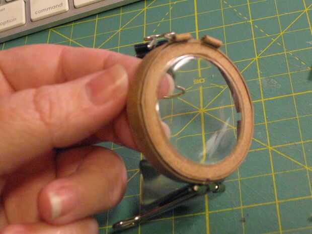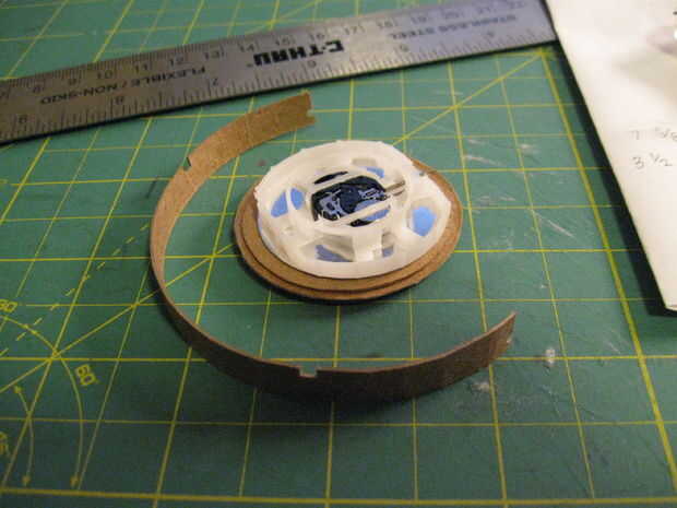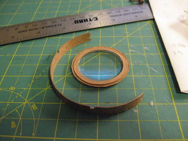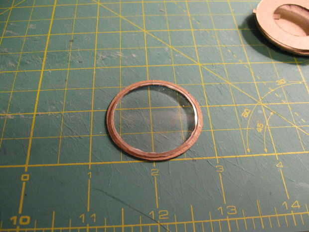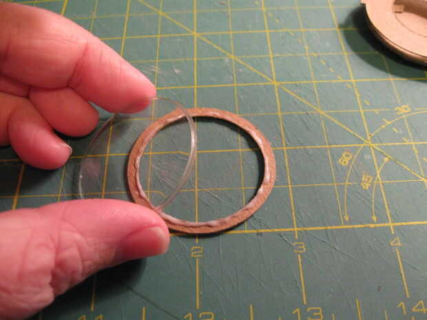 2. con una pequeña cantidad de pegamento en el círculo interior de la pieza A, coloque la tapa frontal de plástico. Si no tienes este pedazo de plástico, corte un trozo de plástico transparente del tamaño apropiado de un informe, envase de alimento utilizado/limpiar u otro material mylar-como.