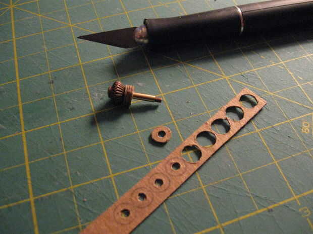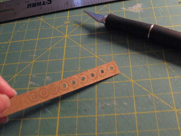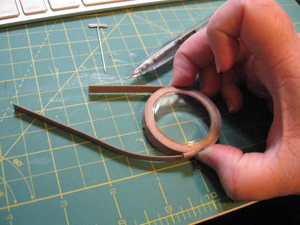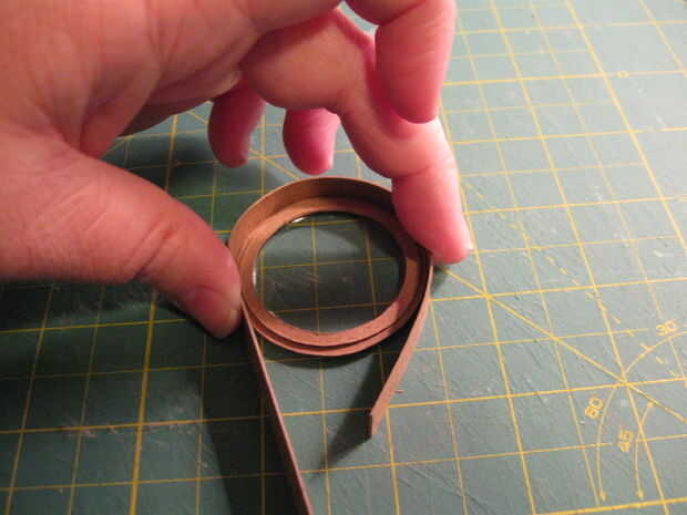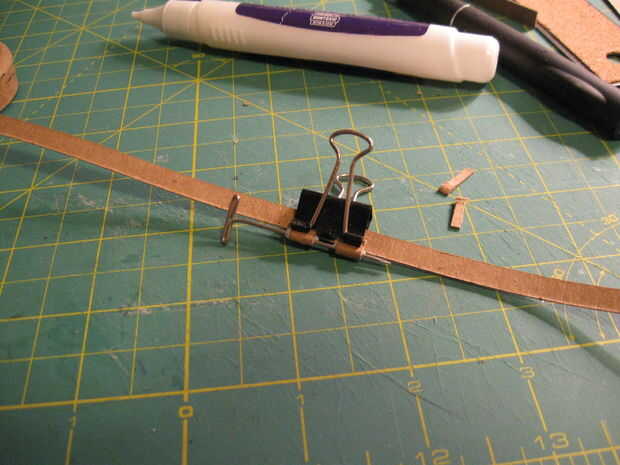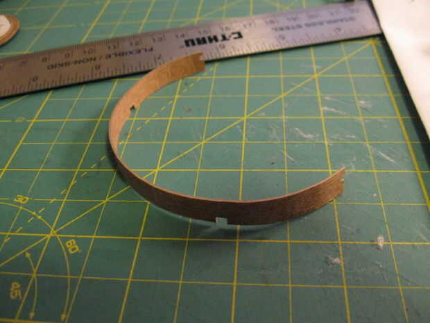 9. bisagra pieza que f. prueba ajuste alrededor de la pieza C de recortar y recortar. Cortar los semicírculos en los extremos, vea el paso 4.