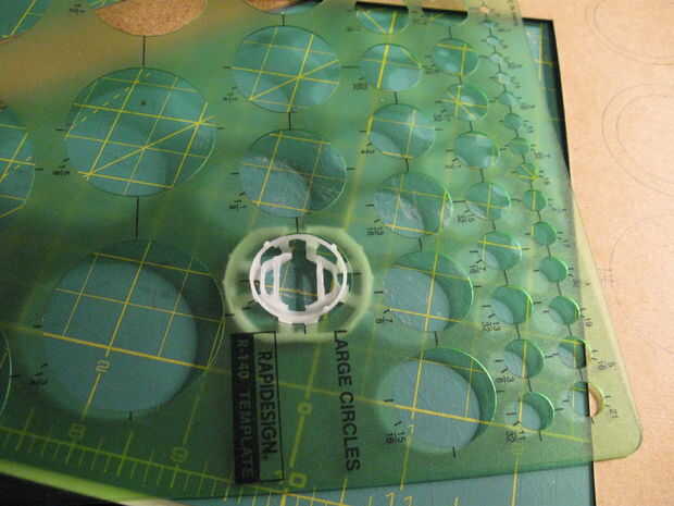 10. Pegue la pieza F alrededor de C, centro de la bisagra en la segunda marca de cuarto (debe estar justo enfrente de la parte superior de la carcasa).
