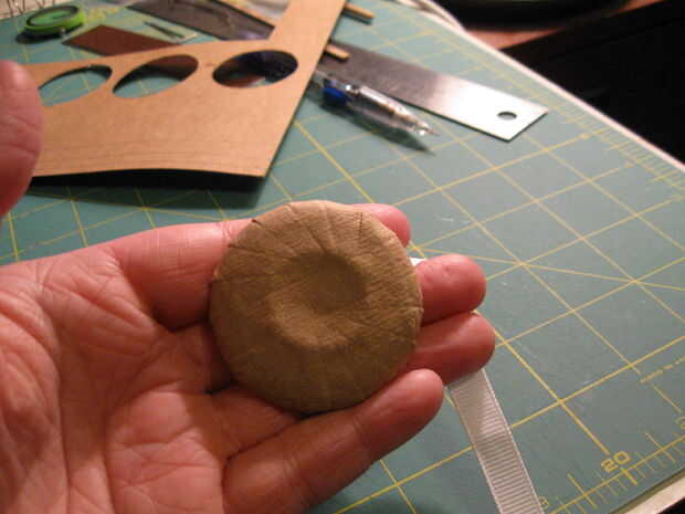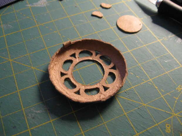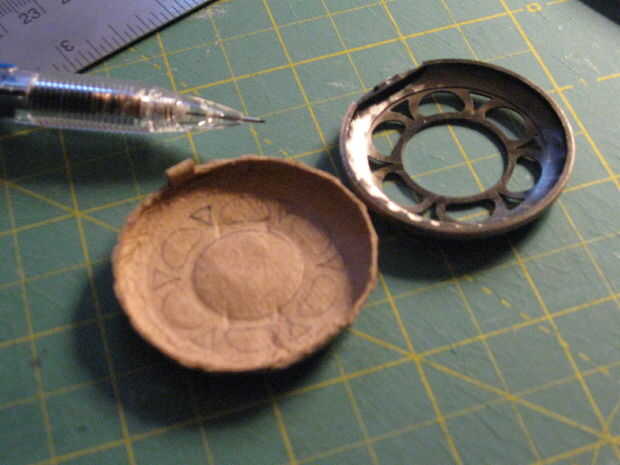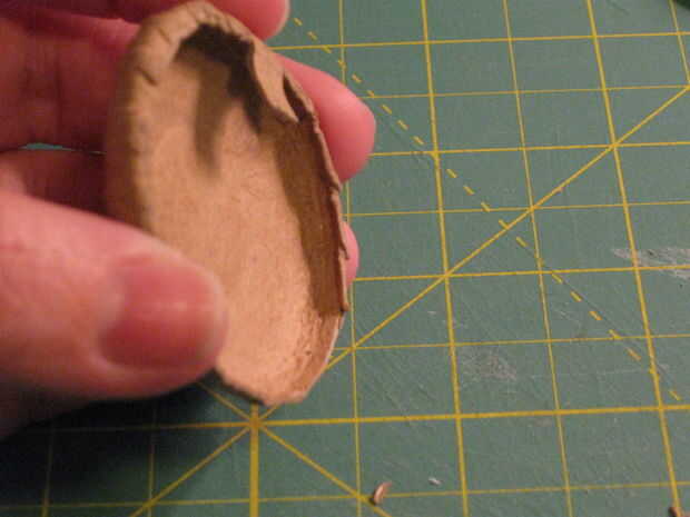 1. con la cubierta del metal dentro del conglomerado formado, con cuidado corte el exceso del conglomerado que envuelve alrededor de la cubierta. No corte el reborde en la cubierta frontal. Si tu cubierta trasera tiene pestañas, corte los.