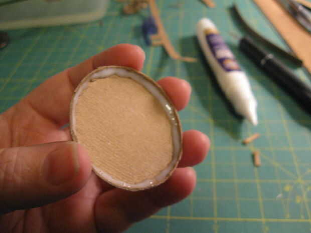 5. Corte una nueva tira 1/8 "x 6." Medida y corte la tira pieza interior pieza de pegamento C. E en el interior de la tapa trasera recortada.
