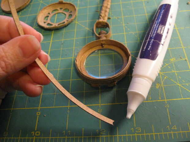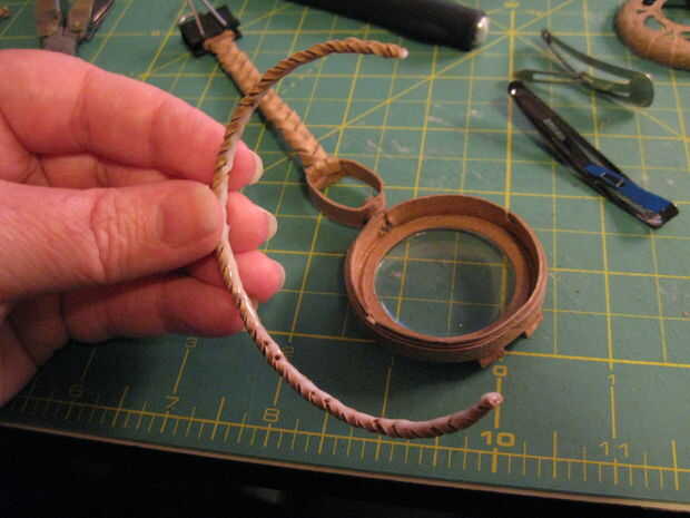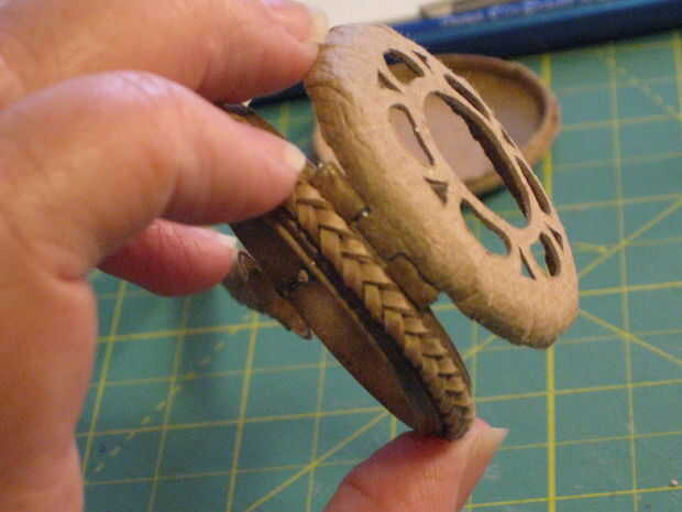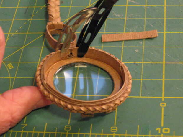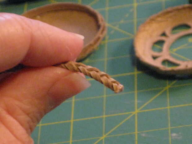 7. Mida y corte la trenza alrededor de. Trenza de cola a la vivienda. Use una cantidad generosa de pegamento para que el perfil redondeado de la trenza tiene un montón de oportunidad para pegarse al perfil plano de la vivienda. Fije y seque.