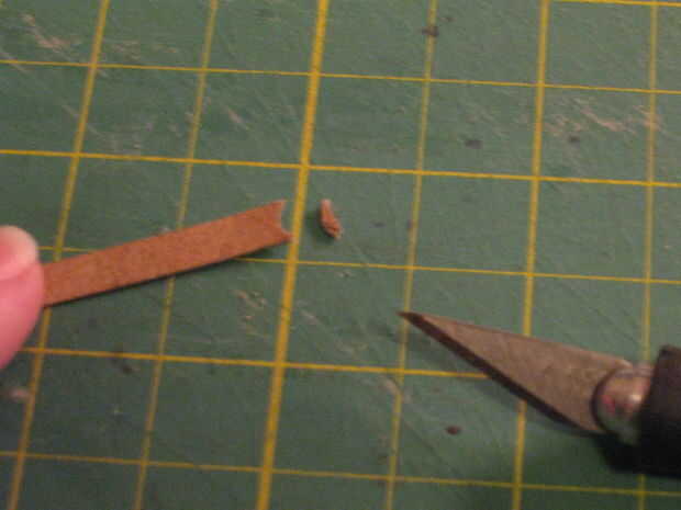 4. tiempo para la tira de E. medida y recortar alrededor de la tira (la tira D con la bisagra). Porque la cadena se une ahora, en lugar de pequeños semicírculos, usted necesita cortar arcos superficiales en cada extremo.