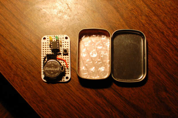 Cortar un trozo del abrigo de burbuja en la parte inferior de la lata Altoids. Esto es para evitar cortocircuitos.