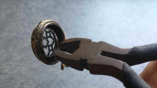 La parte superior inmediatamente viene floja una vez que usted quite el resto de las labores de vigilancia lo que necesitas mantener seguro permitiendo la parte de botón como un broche. Tenía un montón de experimentos tipo trail-y-error para esto así que espero que uno de ellos trabajará para usted: