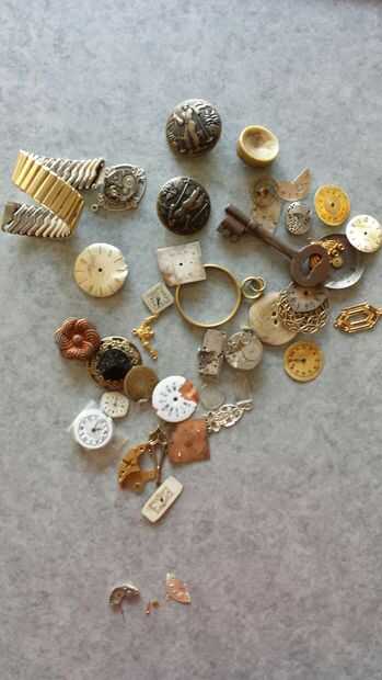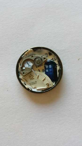 La parte realmente creativa: vaciar bolsas de diversos materiales (una bolsa de steampunk suministros comprados de Compass Rose diseños en una feria de fabricantes de mini, en mi caso) y descubrir un arreglo interesante. Se vuelven locos! Probar cosas diferentes, incluso si ellos no tienen sentido en primer lugar. Elegí algunas piezas del reloj para que se correspondan con la naturaleza de manipulación del tiempo de la Tardis, pero después de agregarlos quería tener más azul para que coincida con la Tardis azul. Por lo tanto. Me arrancaron algunas perlas de turquesa azul y arreglado (era un tipo espontáneo de arreglo. Los a veces milagrosamente llegar ok, gracias a Dios.). Cubrir todo con generosas capas de pegamento para que no tenga que preocuparse con la caída de los objetos.
