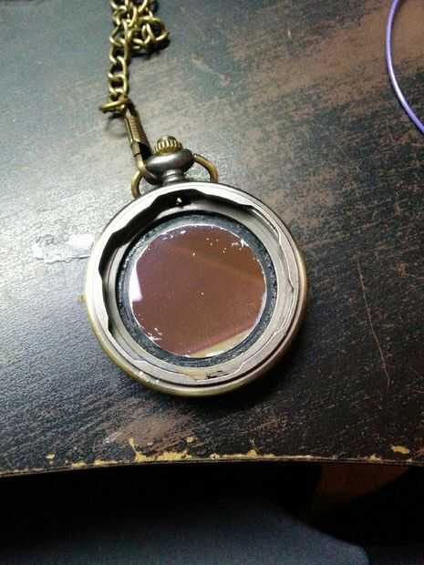 Ponga el vidrio del reloj LED en la posición del vidrio del reloj de bolsillo. Aviso, no lo ponga de adentro hacia afuera. Poner en la parte frontal del reloj, un pequeño borde será visible. Fijar con cinta aislante de algunos y el pegamento que desde el interior al reloj. El pegamento no será visible, porque el vidrio tiene un borde negro. No toma demasiado pegamento y tenga cuidado de no dejar caer pegamento en el área visible.