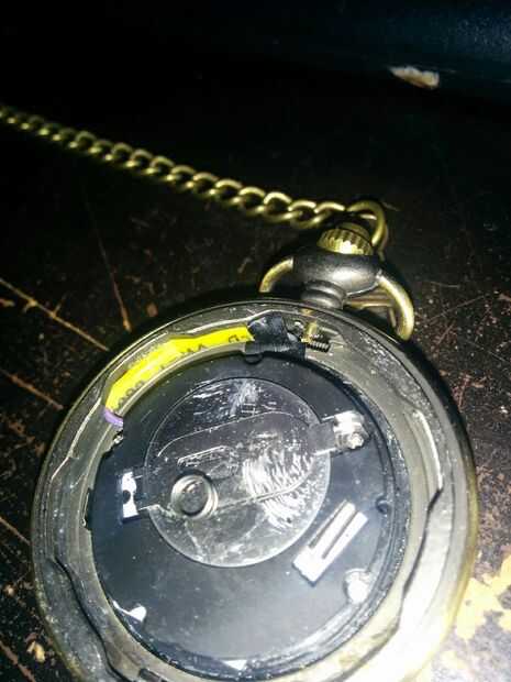P.d.: he intentado soldar un cable a la tierra del reloj de LED y el caso del reloj de bolsillo, pero es muy difícil hacer la conexión con el caso bastante fuerte, por lo que la pluma la primavera fue buena alternativa.