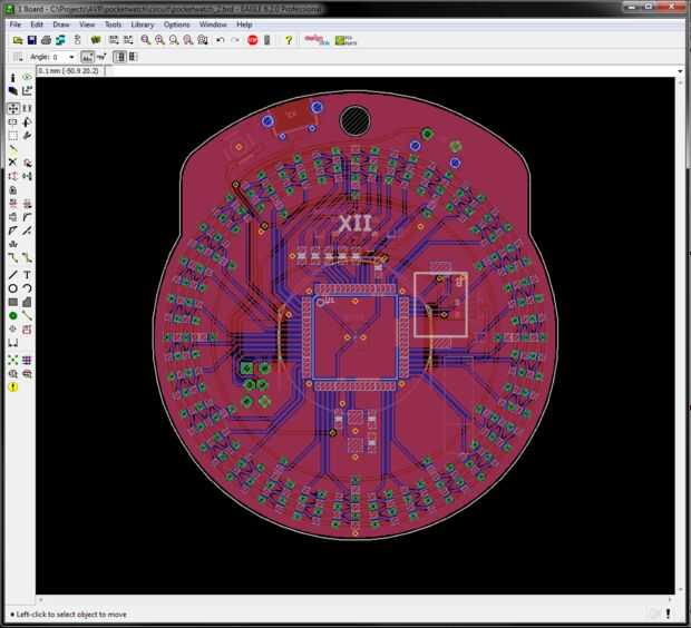 Comencé escogiendo un diámetro que yo soy feliz con (como i toma acerca de mis objetivos de diseño). Había utilizado algunas líneas de referencia y finalmente hizo un esbozo de dimensión de reloj de bolsillo que estoy contento con. Sé que los servicios de PCB utilizo hace que muele para cualquier forma forma redonda está bien. (algunos fabricantes sólo hacer rectángulos, evitarlos)