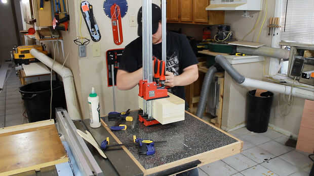 Después de cortar todas las piezas a la longitud pegarlos juntos para formar un bloque más grande de madera. Es importante que la cobertura buen pegamento. Agregar que demasiado pegamento puede ser derrochador cuando aprieta un montón por el lado durante la sujeción pero no manchas sin pegamento pueden resultar en grietas abriendo con el tiempo.
