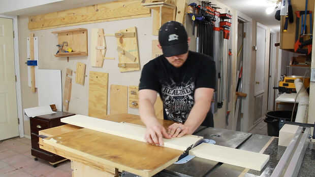 Determinar el tamaño de la forma deseada y averiguar cómo gruesas desea que el proyecto. Me decidí ir por el espesor máximo de mi sierra que es un poco más de 6". Yo sabía que iba a añadir unas tiras más finas en un paso posterior, así que los espesores en cuenta en este paso.