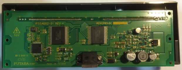 Más tarde, después de desarmar la caja, pude sacar el PCB completo raw pantalla y encontrar la marca y modelo. Marca: Futaba Corp modelo: M202MD10C. Haciendo búsquedas en línea un poco que encontré que Futaba hace algunos modelos de muestra y este modelo fue un poco de fecha. A través del sitio web de Futaba pude registrar y descargar hojas de datos similares, pero no la hoja de datos exactos para esta unidad.