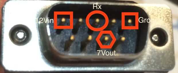 También siguiendo los rastros de PCB, he podido identificar el pin de la probable tensión, así como el conector de tierra. Los otros dos pasadores no estaba seguro de, pero sospecha que fueron pines TX y RX seriales.