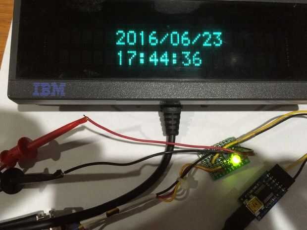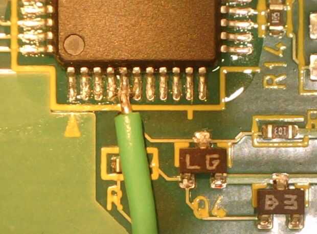 Cuando comencé a conseguir desesperado, decidí conectar un cable al pin RxD y ver lo que fue enviado al controlador. He conectado un segundo amigo de FTDI a este pin y la tierra y envía caracteres sobre el primer amigo de FTDI. Resulta que los personajes que se mostraban eran exactamente los mismos que los lea en mi parche de alambre. De hecho pude enviar caracteres directamente al microcontrolador a través de este parche de alambre y la pantalla de repente estaba trabajando! Así que el problema existió en algún lugar entre el parche de alambre y el arnés de cableado. Utilizando un osciloscopio, he podido comparar las dos señales digitales y determinar que la señal alcanza el micro controlador es inversa la esperada señal digital.