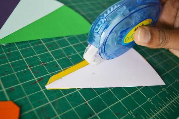 Ahora empezar a pegar y colocar las piezas juntas. Seis piezas por separado y otro seis por separado. Utilice la pieza de la plantilla de cartulina para evitar pegamento en las piezas principales y cubrir la zona de solapamiento con el corredor de la cinta y coloque a otra pieza.