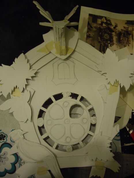 Para hacer esta forma, hice un montón de investigación sobre relojes de cuco y puse un par de interesantes los juntos para hacer de esta forma. Me gustaron los pájaros y el adorno de Reno así que añadido a los y parecía que ningún reloj de cuco fue completa sin hojas.