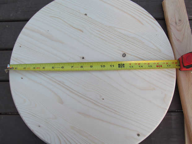 La cabeza es un tablero redondo de 1" de espesor y 18" a través de. Puede utilizar una sierra de contornear para cortar esto si se usa su madera. He comprado mina en mernards aunque usted probablemente podría conseguir en cualquier ferretería.