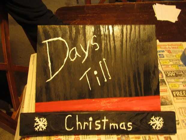 Sombrero: El sombrero necesita a imitar el borde y la forma de la cinta. Esta cinta está pintada de rojo y luego blanco añadido al mojado para crear un efecto agradable en él. Las palabras "Días hasta Navidad" están pintadas en con un pincel fino y pintura blanca. Si desea puede Agregar los copos de nieve a cada extremo del borde.
