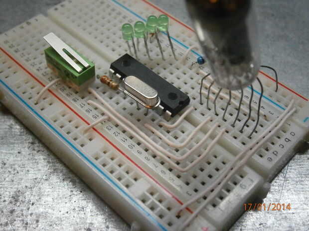 Después de probar en el protoboard, el reloj funciona bien, con el cristal actual el reloj viene adelante un minuto cada 3 días, con una precisión de uno puede ser resuelto, pero es lo suficientemente bueno para mí; porque el tiempo es fácil.