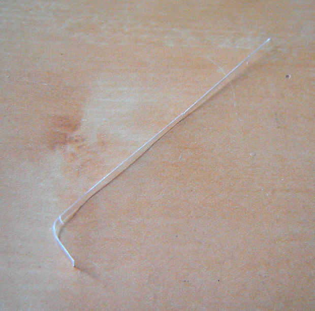 Encontré algunos claros envases de plástico (PET) que había una curva y cortan un pedazo de 2 pulgadas de largo y ~1/4 pulgadas de ancho e incluye parte de la curva (ver imagen 4 y 5 anteriores).