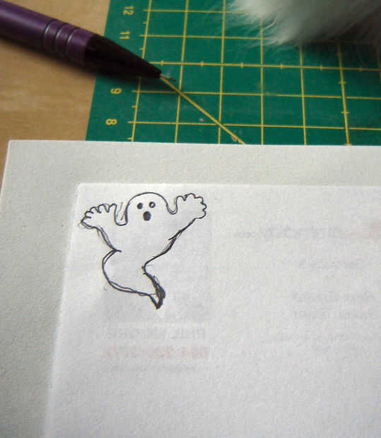 Bosquejar un poco fantasma aproximadamente una pulgada de altura y transferir a la espuma de arte blanco.