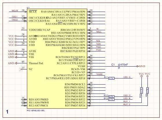 Un par de días que tuve la suerte de tener en mis manos una basura electrónica más grande y una pistola de aire caliente. Yo tengo muy pocos procesadores PIC, MOS-FETs, LEDs, relojes en tiempo real, osciladores de cristal y varios otros componentes valiosos. Uno de los procesadores que rescató fue un PIC18F46J50, elegí este es mi unidad principal de procesamiento. Altium Designer tiene un amplio conjunto de esquema y PCB bibliotecas de componentes electrónicos, llevó a las librerías de Microchip y había añadido el procesador desde allí. De esta manera usted puede hacer seguro que no fallas en la huella de PCB - estas bibliotecas son revisadas a fondo.