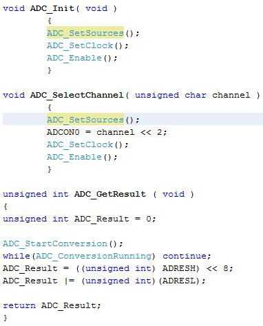 Tener un potenciómetro que ajusta el ciclo de trabajo PWM es la mejor manera de ajustar la velocidad de rotación para el husillo. El convertidor analógico digital puede utilizarse para leer la derivación central del potenciómetro, la tensión se leerá en los registros del valor de AD, desde donde se puede sacar por firmware para posterior procesamiento y manipulación. Teniendo que este valor significa, que podemos ajustar fácilmente el ciclo de trabajo PWM. Para mi gran felicidad que ambos valores son de 10 bits, así que lo que tengo que hacer enviar los bits del valor AD inscribirse en el registro del ciclo de deber. El código de inicialización del módulo de publicidad se puede ver entre las imágenes que os adjunto a este paso.