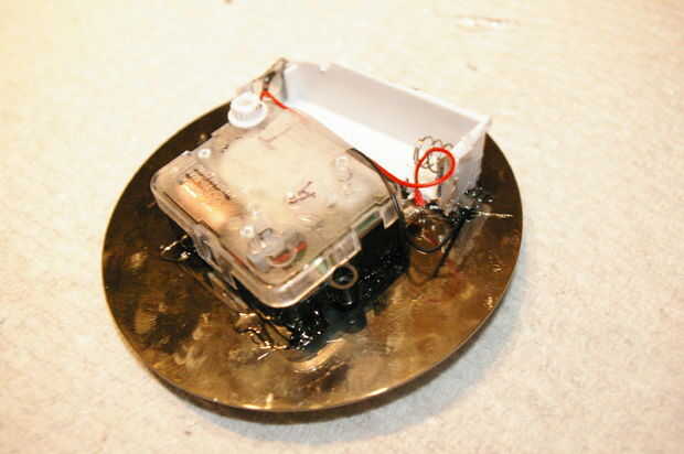Los mandos eran grande y hecha el reloj sobresalen mucho de la pared, por lo que les llevó tanto, corte el enlace alarma totalmente y el tiempo uno por la mitad y recortar la perilla por consiguiente. La perilla no encendida ahora, así que un poco de pegamento para fijarlo.