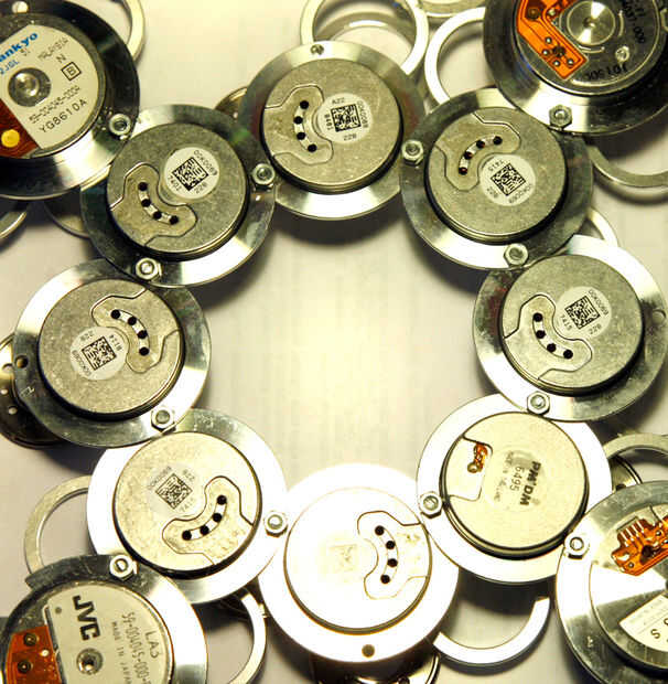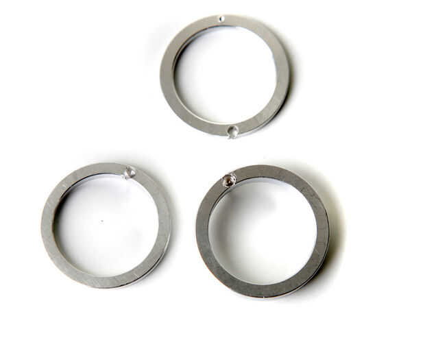 Para crear la "cara" de mi reloj he utilizado las arandelas de aluminio o espaciadores que separan difícilmente conducen platos. Para unirse a ellos que necesitarás taladro y pequeño calibre de brocas.