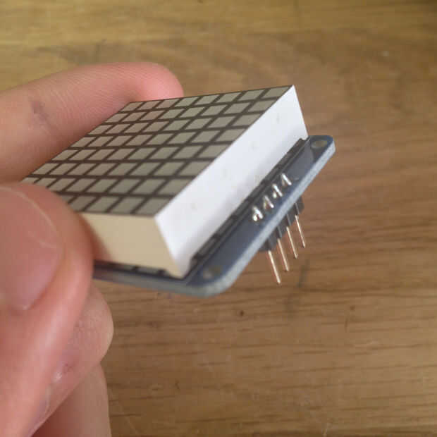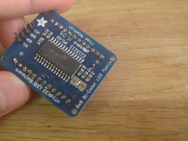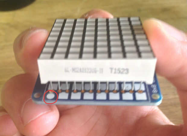 Al soldar las matrices de LED en sus mochilas, asegúrese de que el lado con texto impreso es el mismo lado que el círculo de la pantalla de seda. En la parte posterior, corta las teclas de dirección I2C como sigue: