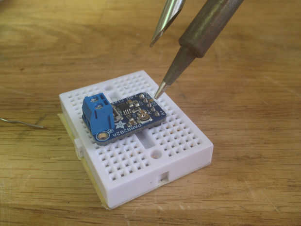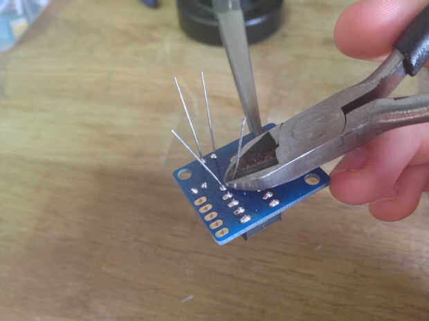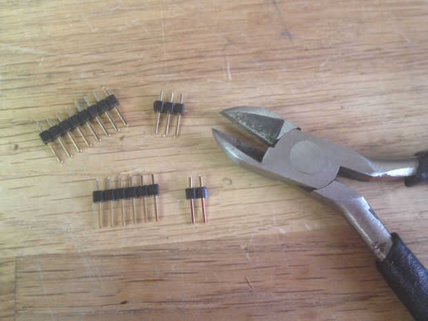 Usted necesitará los suministros de soldaduras para los siguientes tres pasos. Mientras la plancha se calienta, inicio el número de pines de cabezal de corte para cada arranque, luego les de la soldadura en. Usando un protoboard ayuda mucho.